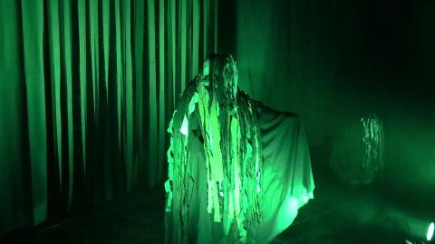 - Iluminación: Obscuridad total con luz negra, o penumbra según la escena.