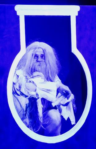 - Iluminación preferentemente mediante focos led que permitan cambiar los matices de luz completados si es necesario con focos convencionales o de cuarzo. Focos ultravioleta imprescindibles para la escena del viaje. Mesa de luces. ( Aportados por TIA, en caso de representar en salas que no tengan dotación).